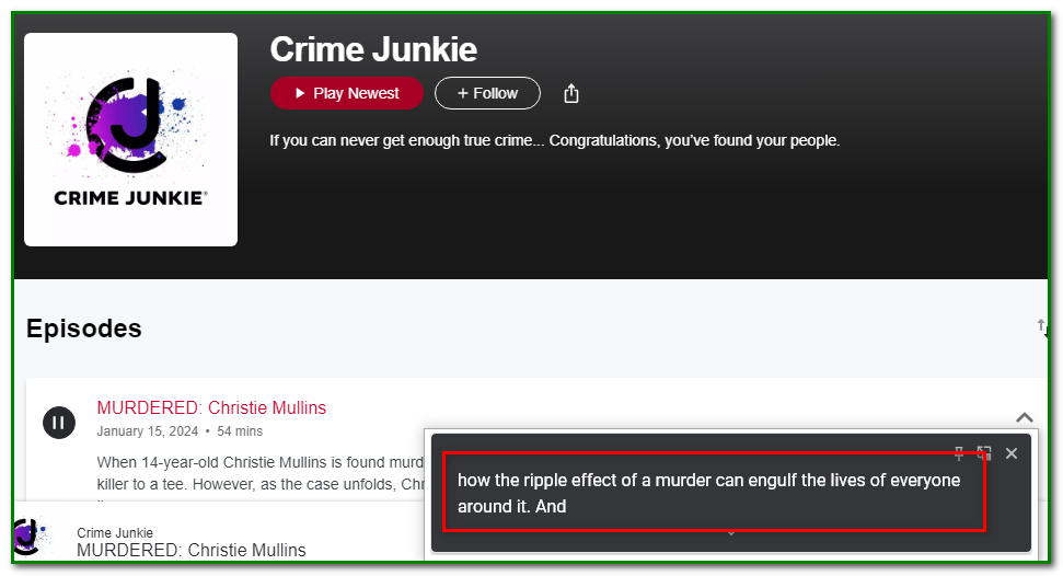 If you want to read the captions of a video, or podcast, you can do so in Google Chrome.